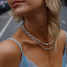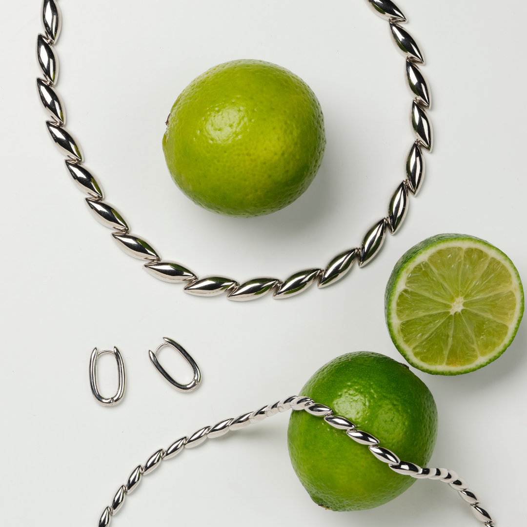 Featuring oversized marquise-shaped links with a luminous silver finish, it captures the light from every angle and adds instant polish to any look.