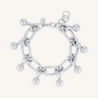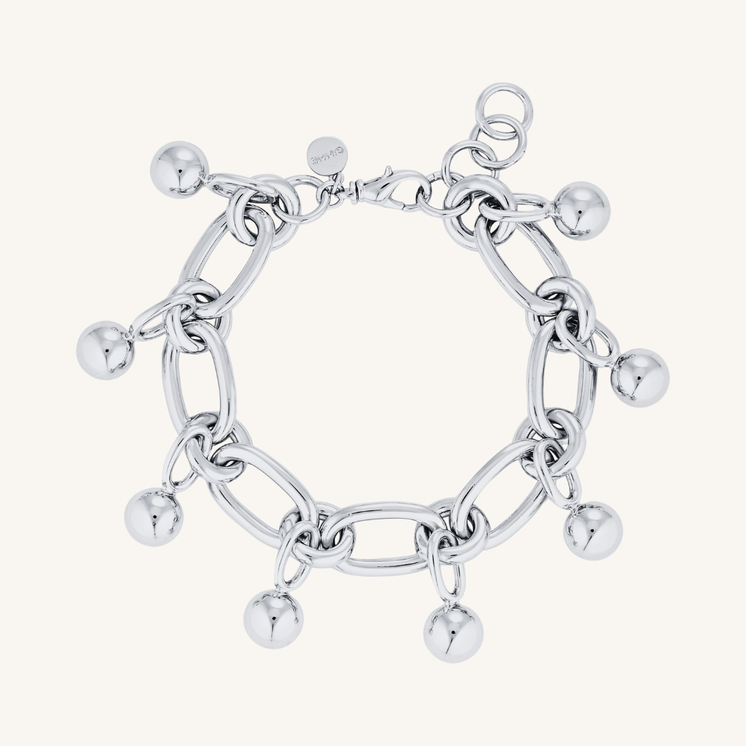 Striking yet versatile, the Sphere Chain Bracelet in silver brings a fresh, modern edge to any outfit. With oversized links and polished sphere charms, this piece balances sculptural drama with everyday wearability.