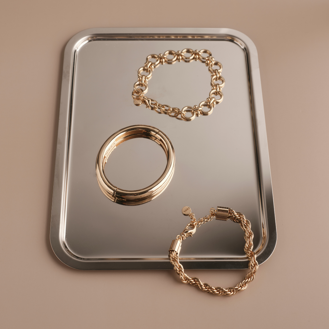 We use a generous layer of gold over high-quality brass for that luxe look (minus the solid gold price!)