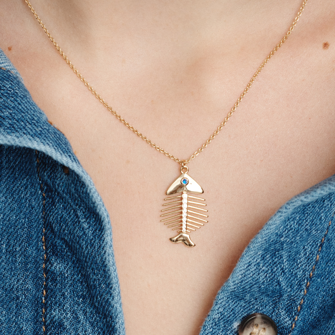 The Pesce Necklace features a stylised, gem-encrusted fish charm, designed to bring just the right amount of edge to your everyday layers. It’s equal parts playful and polished, perfect on it's own or added to your existing necklace stack.