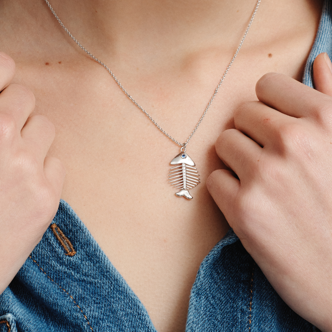 A little unexpected. A little iconic. This gem encrusted fish necklace will add playful polish to every outfit. Also available in Gold.