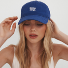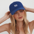 This classic blue cap with the words 'Gimme Margs' embroidered in white on the front suits everyone.