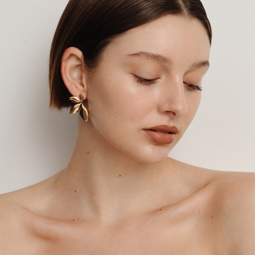 Make a statement in seconds with these sculptural floral earrings. Designed to bloom just below the earlobe, they add a bold, feminine edge to even the most basic outfit. We love them styled with a sleek pony!