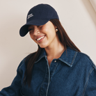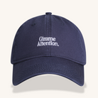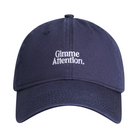 This classic navy cap with the words 'Gimme Attention' embroidered in white on the front.