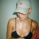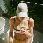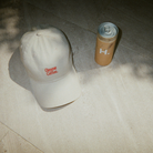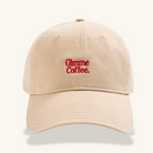 This classic beige cap with the words 'Gimme Coffee' embroidered in red on the front suits everyone.