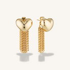 The Paris Earrings are a love letter to bold styling featuring puffed heart studs with a detachable rainfall chain back. Wear them two ways: go full drama with the cascading fringe, or keep it simple with just the puffed heart as a standalone stud.